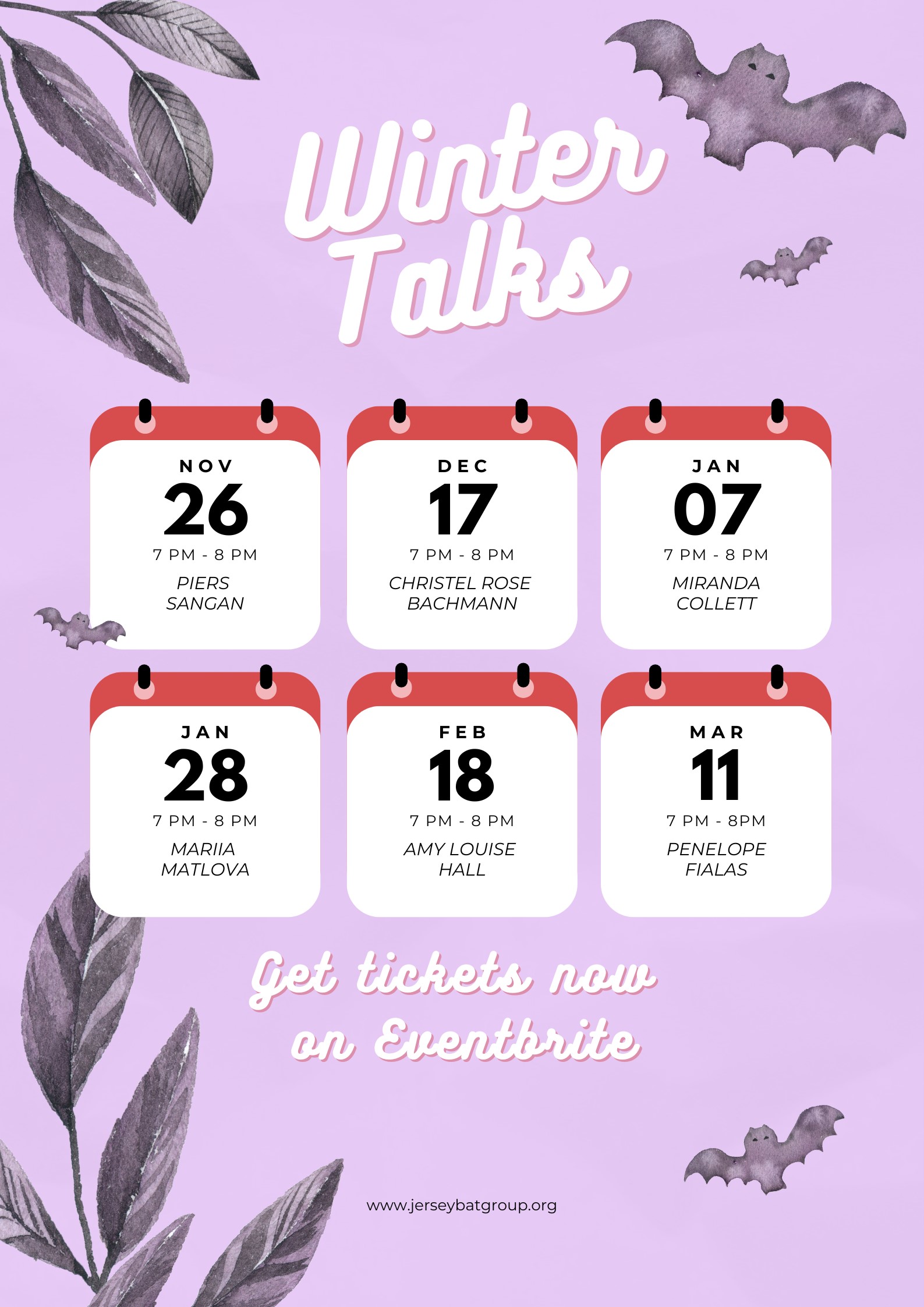 The Jersey Bat Group has announced its 2025–2026 Winter Talks series, bringing together six inspiring bat experts from around the world for an engaging season