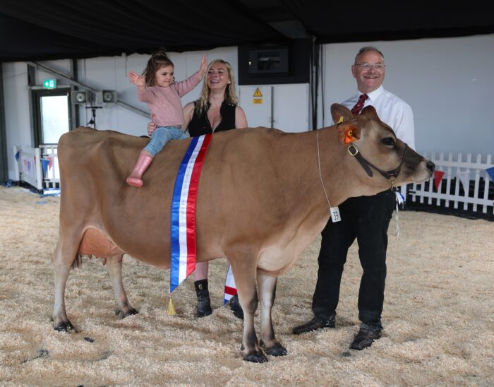The supreme championship in the cattle show was won by Gene Countess Devinci Opel, a young cow, aged four years old, and owned by Lodge Farm’s Rebecca Barnes-Barrington (Becky Houzé). Runner-up was La Ferme’s Ansom Quango Cyber. The same two cows won the best uddered championship.